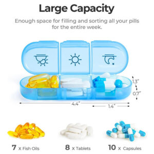 Perfeito para transportar: este organizador semanal de caixas de comprimidos tem 7 organizadores de comprimidos diários separados por uma semana, um total de 21 compartimentos grandes.
