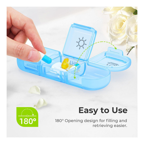 Facilitando para o usuário: a caixa de comprimidos diária colorida lembra você de tomar a dosagem correta todos os dias, rastreando e mantendo facilmente seu regime diário de medicação. O porta-comprimidos Auvon foi projetado para ser fácil de usar e a tampa pode conter uma grande abertura, tornando-o eficiente no manuseio de seus comprimidos.