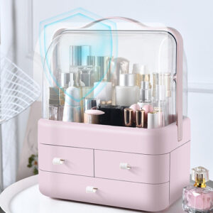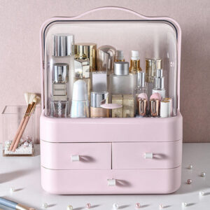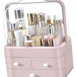 Caixas De Armazenamento De Mesa Recipiente à Prova De Poeira Unidade De Armazenamento De Cosméticos Para Casa Rosa Vaidade