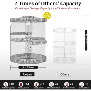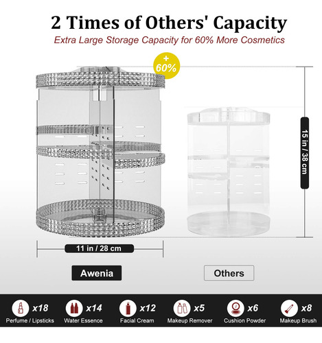 Organizador De Maquiagem Awenia 360° Giratório Com Grande Ca