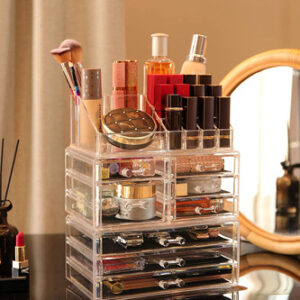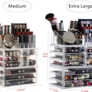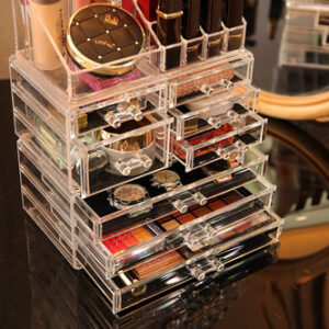 O projeto contém apenas o organizador. Use os melhores organizadores de cosméticos para organizar seu quarto e banheiro hoje. Então, você gostaria de escolher um projeto como investimento de longo prazo para uma mulher? Quase todos esses organizadores de maquiagem anunciados como acrílico são, na verdade, feitos de um material mais frágil chamado Poliestireno. Não usamos 'moldes de plástico' para produzir em massa o acrílico Cq – ele é meticulosamente feito à mão. O acrílico é transparente como vidro, tem uma aparência requintada e não lasca como o plástico. Com acrílico transparente da mais alta qualidade, o acrílico CQ é um produto exclusivo de alta qualidade e é, sem dúvida, um investimento de longo prazo para manter sua maquiagem cara segura, organizada e arrumada como ela merece ser. Quando você tem muita maquiagem e joias, sabe em primeira mão o quão difícil pode ser organizar tudo e mantê-lo unido e à mão quando você precisar. Felizmente, a caixa de cosméticos acrílico Cq está aqui para oferecer o melhor dos mundos em um estojo de armazenamento bonito e elegante. Projetada para guardar todos os seus acessórios de maquiagem favoritos e suas melhores joias, a caixa cosmética acrílica acrílica universal Cq oferece mais armazenamento e mais conveniência do que uma caixa de joias comum ou estojo de cosméticos. Com 8 gavetas grandes e 16 compartimentos, você nunca mais precisará procurar seu batom, blush ou casamento em toda a casa ou no banheiro. Características e benefícios: Dimensões do organizador de acrílico 9,5 x 6 x 12 polegadas 8 gavetas e 16 compartimentos comporta maquiagem, batom, pincéis de maquiagem, joias e muito mais. Gavetas acolchoadas de malha. Alças fáceis de manusear. Limpa facilmente com água morna e um pano. Clique em “Adicionar ao carrinho” acima e adquira o seu hoje! – O organizador de maquiagem, tamanho 9,5 “L x 6" L x 12" A, consiste em 3 organizadores independentes. Use individualmente ou empilhe para economizar espaço na penteadeira ou na banheira – Com 8 gavetas e 16 compartimentos, gavetas de tamanhos diferentes servem para armazenar paletas, perfumes, batons, brilhos labiais, esmaltes, joias e pincéis de maquiagem, hidratantes, máscaras e loções – Você também pode usar o gaveta sozinha, perfeita embaixo da pia do banheiro para guardar bolas de algodão, cotonetes e loção – O organizador transparente de produtos para a pele permite que você veja com mais clareza o que precisa e organize todos os seus cosméticos e joias em uma penteadeira deslumbrante – Nós mesmos produzimos e vendemos, oferecemos o melhor preço, nossa equipe presta o melhor serviço, o melhor uso do acrílico. Se houver problemas de qualidade e danos no transporte, podemos escolher uma substituição ou reembolso, sem problemas, e é por isso que vem com uma garantia de satisfação de 30 dias