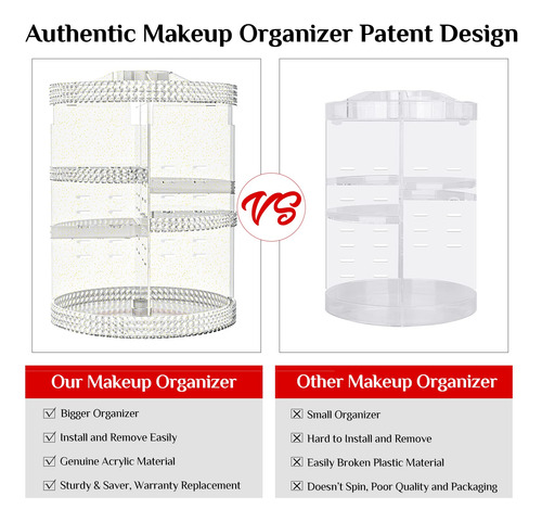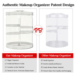 organizador de perfume acrílico, organizador giratório de bancada de banheiro, organização e armazenamento de beleza, bandeja espelhada para cristais, bancada organizadora de cosméticos, organizador giratório de maquiagem, organizador rotativo de maquiagem, organizador giratório de maquiagem 360, organizador giratório, organizador giratório para maquiagem, organizador giratório para maquiagem, organizador de maquiagem grande, organizador de carrossel, organizador de maquiagem e perfume, organizador giratório de cosméticos, 15×15 Organizador de maquiagem GG, rotativo, organizador de maquiagem enorme para atender a um maior grau de satisfação do cliente. 7 camadas de bandejas ajustáveis- Permite ajustar a altura da bandeja de acordo com a altura de seus produtos; o organizador de maquiagem para banheiro serve para todos os tipos diferentes de cosméticos e acessórios. Instalação simples e lavável – Fácil de montar e desmontar o organizador seguindo as instruções; conveniente de limpar com um design desmontável e material lavável. Organizador de maquiagem giratório multifuncional para sua penteadeira, banheiro, quarto, vestiário, vaso sanitário, mesa, bancada e escrivaninha. Ótima ideia de presente para Natal, Ano Novo, Dia dos Namorados, Dia das Mães, aniversários e muitos outros feriados. Organizador cosmético multifuncional de rotação de grande capacidade O organizador de maquiagem Famitree 360 Rotation é um ótimo design para mulheres. Ele organiza e armazena perfeitamente seus cosméticos, incluindo batons, géis labiais, esmaltes, pincéis de maquiagem, cor de bochecha, lápis de sobrancelha, bastões de base, aparelhos de beleza, colares, anéis e muito mais. Seria um ótimo complemento para seu quarto, banheiro, balcão, cômoda e penteadeira para mantê-los com uma aparência muito mais limpa. Presente ideal para seus amigos, familiares e qualquer amante de maquiagem. – Organizador de maquiagem grande Famitree A qualidade do produto e o atendimento amigável ao cliente são sempre nossa maior prioridade. Insistimos em nossa qualidade. TODOS OS PEDIDOS DA FAMITREE TERÃO UM REEMBOLSO TOTAL DE 30 DIAS, SUBSTITUIÇÃO EM 180 DIAS E SERVIÇO DE SUPORTE VITALÍCIO. Se você tiver alguma dúvida, entre em contato conosco por e-mail da Amazon imediatamente e forneceremos uma solução perfeita em 12 horas. A Famitree estará sempre com você. Desejo a você uma vida feliz todos os dias. – O organizador de maquiagem X-Large foi projetado com um processo de espessamento para se tornar mais durável e não ser facilmente danificado. O conteúdo da imagem mostra mais de 70 peças: 30 produtos para a pele, 20 batons, 23 perfumes, 10 canetas para sobrancelhas e 7 pincéis de maquiagem, economizando 70% de espaço para você. Tamanho total: 12 x 12 x 15 polegadas. QUERIDA, ESTAMOS PRESTES A LANÇAR UM NOVO ORGANIZADOR ROTATIVO DE MAQUIAGEM 360; COM MAIS ESPAÇO, MAIS PRODUTOS DE ARMAZENAMENTO E FUNÇÕES ABRANGENTES; PRESTE ATENÇÃO!!! – A base estável reforçada gira de forma suave e silenciosa, facilitando o acesso a toda a sua maquiagem em segundos. 7 camadas ajustáveis podem se ajustar para acomodar todos os seus cosméticos em diferentes tamanhos e alturas. Faça você mesmo para decorar sua mesa de maquiagem. (O organizador de maquiagem 360 é um presente ideal para sua esposa, sua namorada, sua filha ou aquela pessoa especial em sua vida.) – O organizador de maquiagem Famitree é feito de material acrílico de alta qualidade. Nosso armazenamento de maquiagem é claramente transparente e mais durável do que outros organizadores de plástico. 20 anéis de borracha premium (4 anéis extras são adicionados) e fundo antiderrapante ajudarão a melhorar a firmeza. TAMANHO GRANDE (PLUS); O SUFICIENTE PARA GUARDAR SEU PERFUME DE MAQUIAGEM E MUITO MAIS. SATISFAÇA SUA VAIDADE. – O organizador de maquiagem é fácil de montar e desmontar de acordo com nosso manual do usuário. Design removível e material lavável para facilitar a limpeza. SE VOCÊ TIVER ALGUM PROBLEMA COM OS ITENS QUE RECEBEU, NÃO HESITE EM NOS CONTATAR, EU LHE DAREI UMA RESPOSTA SATISFATÓRIA. FAMITREE ESTARÁ SEMPRE COM VOCÊ.
