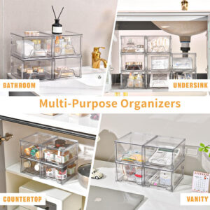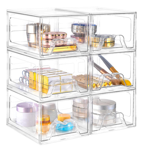 Organizador de maquiagem empilhável Stebopum, pacote com 6, organizador de maquiagem de banheiro de acrílico de 4,4 polegadas de altura e gaveta de armazenamento com alça removível, caixas de armazenamento de plástico transparente para penteadeira, despensa, escrivaninha, cozinha – [organizadores multiuso] Nossa bancada organizadora de maquiagem se encaixa em vários espaços, como bancada de banheiro, pia, pia, despensa, cozinha, cafeteria e escritório. Você pode usar nossa caixa de maquiagem com flexibilidade para organização e armazenamento de acordo com suas necessidades. – [Design empilhável e economia de espaço] Vem com organizadores de armazenamento de 6 gavetas, cada organizador mede 7,3 “D x 5,9" L x 4,4" H. Ele pode ser empilhado arbitrariamente de acordo com as necessidades do seu espaço, o que economiza espaço e melhora a eficiência do armazenamento. Você pode empilhá-los de acordo com o formato necessário para manter seu espaço mais organizado. – [Alça embutida e antiderrapante] Esses organizadores de gavetas de maquiagem são projetados com alças removíveis para facilitar o armazenamento e a remoção de itens. Os adesivos de borracha na parte inferior são antiderrapantes; portanto, quando retiramos a gaveta, nossa capa não se move. – [Mantenha sua casa organizada] Nossos organizadores de maquiagem ajudarão você a organizar melhor seu espaço e tornar sua casa mais estilosa. Esses organizadores de penteadeira podem organizar cosméticos, suprimentos de banheiro, temperos de cozinha, lanches, artesanato e muito mais. Nossos organizadores de cuidados com a pele para organização e armazenamento facilitam a organização, permitindo que você encontre rapidamente o que precisa. – [Design transparente e serviço de marca] O organizador de cosméticos permite que você veja claramente o conteúdo do recipiente e permite que ele seja melhor exibido. Combina perfeitamente com a maioria das decorações, e a caixa de maquiagem é popular entre todos os adultos, meninas, adolescentes, amantes de beleza, moda e maquiagem. Se surgirem problemas de qualidade e danos no transporte, você pode escolher uma substituição ou reembolso. Qualquer problema, entre em contato conosco por e-mail sem hesitar.