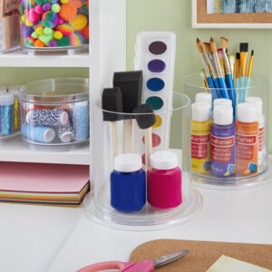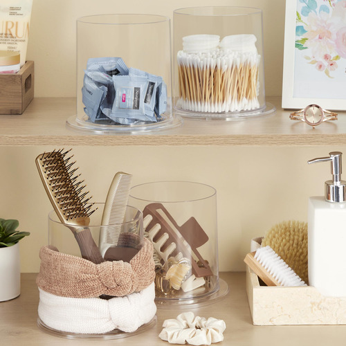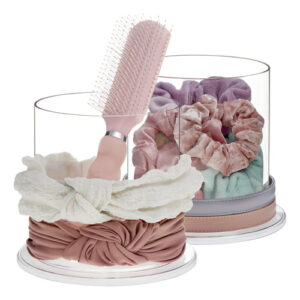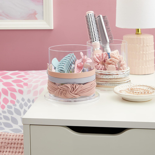 Essas vasilhas transparentes contêm seus itens essenciais diários para o cabelo em um único local. O design simples fica ótimo nas bancadas do banheiro. Mantenha elásticos, grampos de cabelo e bandanas limpos e arrumados nas prateleiras. Guarde pincéis, frascos de spray de cabelo e suprimentos de beleza em qualquer penteadeira no compartimento aberto. Seja criativo e guarde frascos de tinta e pincéis em uma mesa de artesanato. Limpa facilmente com sabão neutro e água morna. Este organizador transparente é feito com orgulho nos EUA. – [Sem necessidade de montagem] Fabricados nos Estados Unidos com plástico transparente da mais alta qualidade e durável, sem BPA, nossos porta-bandanas priorizam a qualidade e a responsabilidade ambiental. Ao escolher produtos fabricados no país, você reduz as emissões de carbono da produção à entrega em comparação com os produtos produzidos no exterior. – [Duplique seu armazenamento] Conjunto de 2 expositores com bandana. Receba não apenas um, mas um par de expositores de bandana com este conjunto, permitindo que você organize com eficiência seus suprimentos de cabelo em um local centralizado. Diga adeus à frustração de vasculhar gavetas bagunçadas, agora tudo o que você precisa está perfeitamente ao seu alcance. – [Design completo] O compartimento de armazenamento circular serve para escovas de cabelo, pentes, clipes e elásticos. Mantenha bandanas e laços na parte externa do recipiente. Seus itens essenciais para o cuidado do cabelo permanecerão bem organizados e facilmente acessíveis nas prateleiras do banheiro ou na cômoda do quarto de uma menina. – [Escolha inteligente] Eleve seu jogo de organização doméstica com esta solução de armazenamento inteligente. Organize itens para o cuidado do cabelo em casa em armários femininos, estantes de livros ou prateleiras de armários. O design claro combina facilmente com qualquer estilo em qualquer ambiente. Use o conjunto de dois suportes em várias salas para simplificar sua rotina. – [Presente ideal] Apresente o dom da organização aos seus entes queridos com confiança. Perfeito para namoradas, esposas, mães, filhas e amigas, este item é a escolha ideal para Natal, Dia dos Namorados, Ano Novo, aniversários ou até chás de bebê. Além de oferecer utilidade prática, ele também adiciona um toque de elegância ao seu espaço, segurando laços, elásticos e bandagens de cabeça com facilidade.