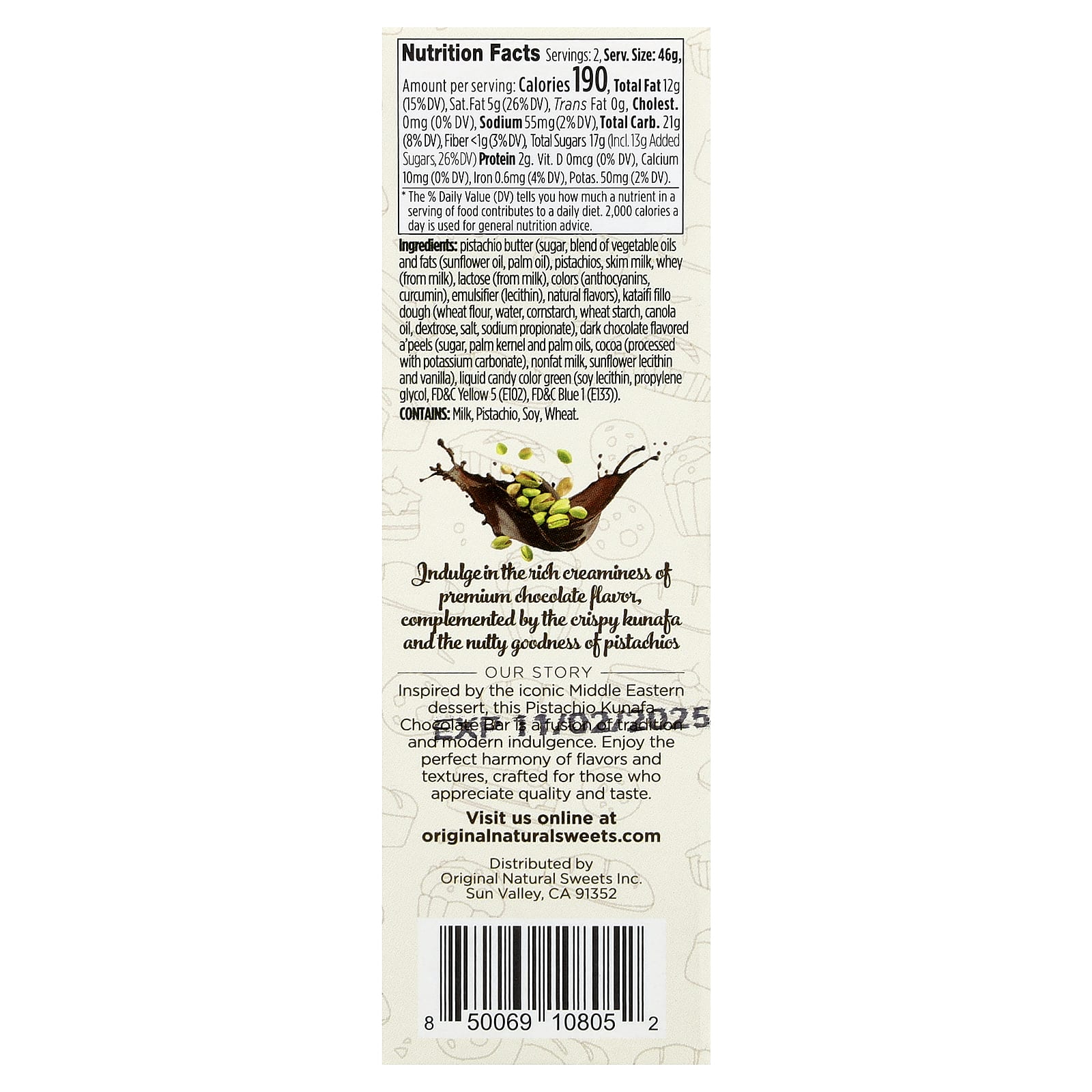 Delicie-se com a rica cremosidade do sabor de chocolate premium, complementada pela kunafa crocante e pelas nozes deliciosas dos pistaches.