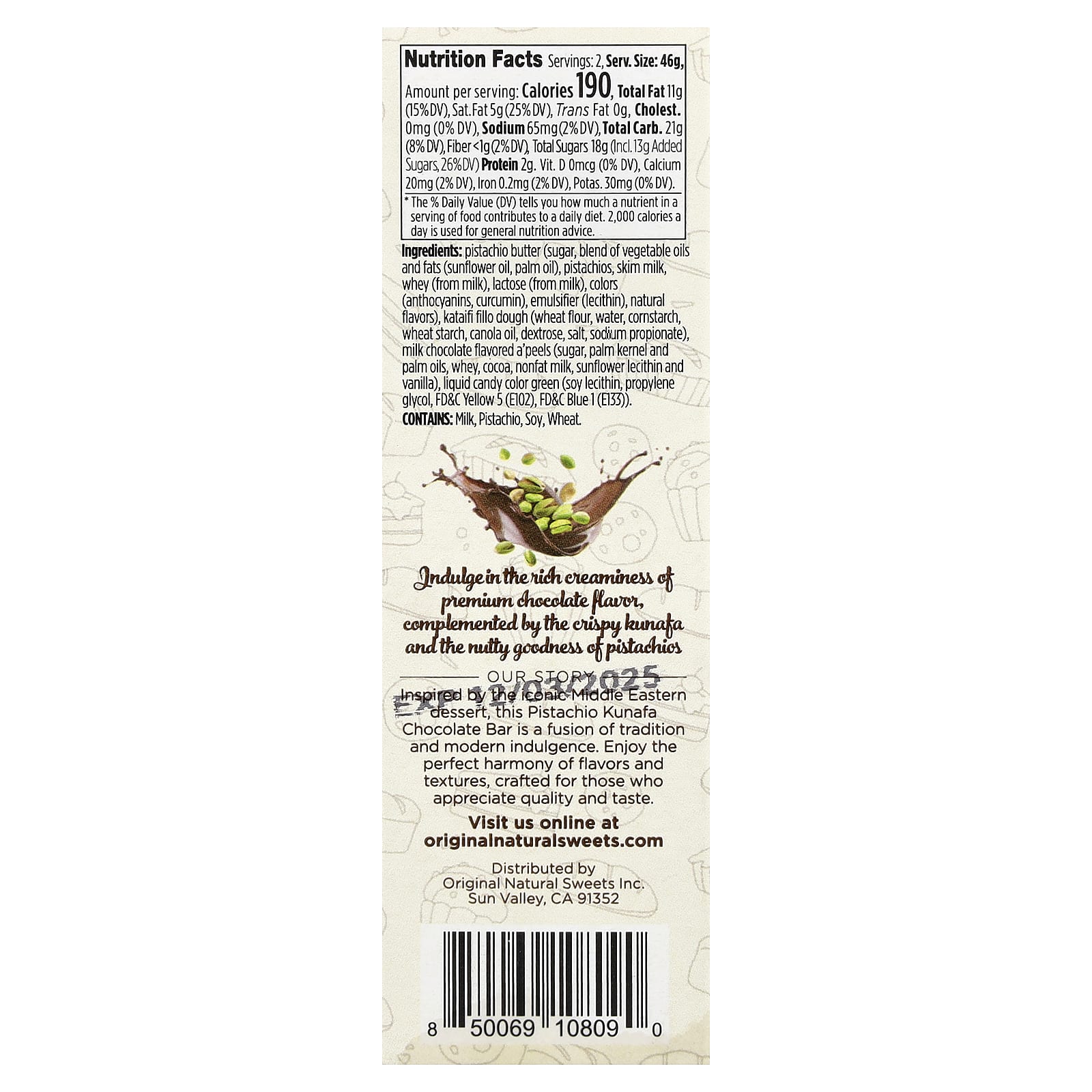 Delicie-se com a rica cremosidade do sabor de chocolate premium, complementada pela kunafa crocante e pelas nozes deliciosas dos pistaches.