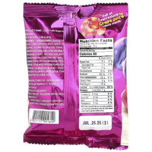 Oligossacarídeo, xarope de glicose, açúcar, suco concentrado de uva branca, gelatina, solução de d-sorbitol, suco de uva concentrado de trealose, ácido cítrico, ácido málico, citrato trissódico, ácido tartárico, xilitol, carragenina, maltodextrina, pectina(pectina de citrato de sódio, tartarato de sódio e potássio, sacarose, ácido cítrico), sabor artificial (uva), corantes artificiais (azul alimentar n.º 1, vermelho alimentar n.º 40, amarelo alimentar n.º 4), óleo processado, etanol, suco concentrado de limão.
