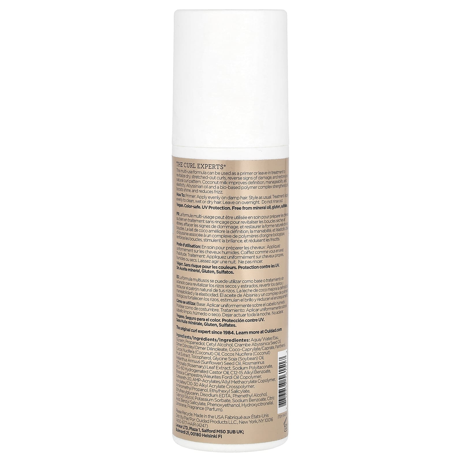 Esta fórmula multiuso pode ser usada como primer ou tratamento leave-in para revitalizar cachos secos e esticados, reverter os sinais de danos e restaurar o padrão natural dos cachos. O leite de coco melhora a definição, a maleabilidade e a elasticidade. O óleo abissínio e um complexo de polímeros de base orgânica fortalece os cachos, aumenta o brilho e reduz o frizz.