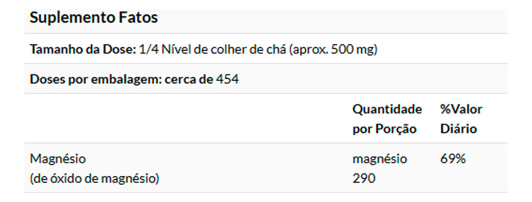 5. Composição Pura e Eficaz: A formulação deste Óxido de Magnésio em Pó é focada na eficiência e pureza. Livre de aditivos desnecessários, ele oferece uma opção confiável e direta para aqueles que buscam incluir magnésio em sua dieta. Validade longa