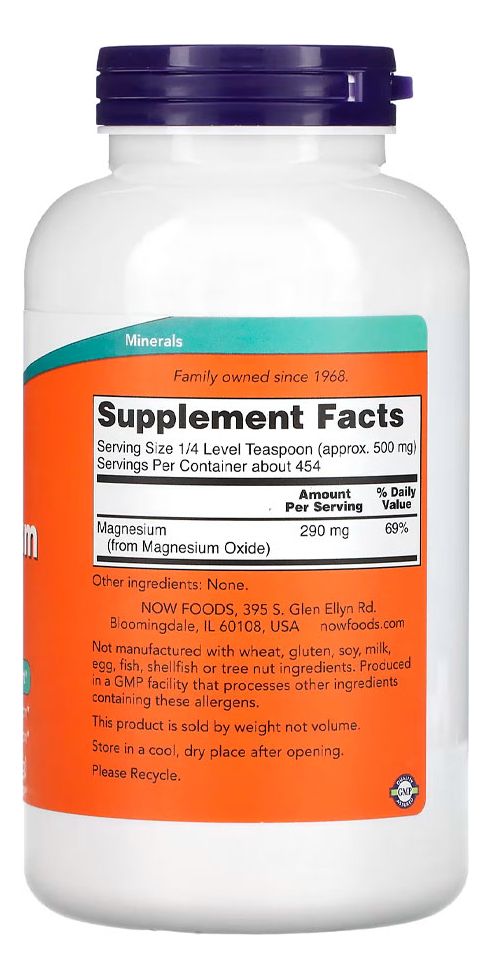 Óxido de Magnésio em Pó Now Foods 227g Importado + Porta Cápsulas