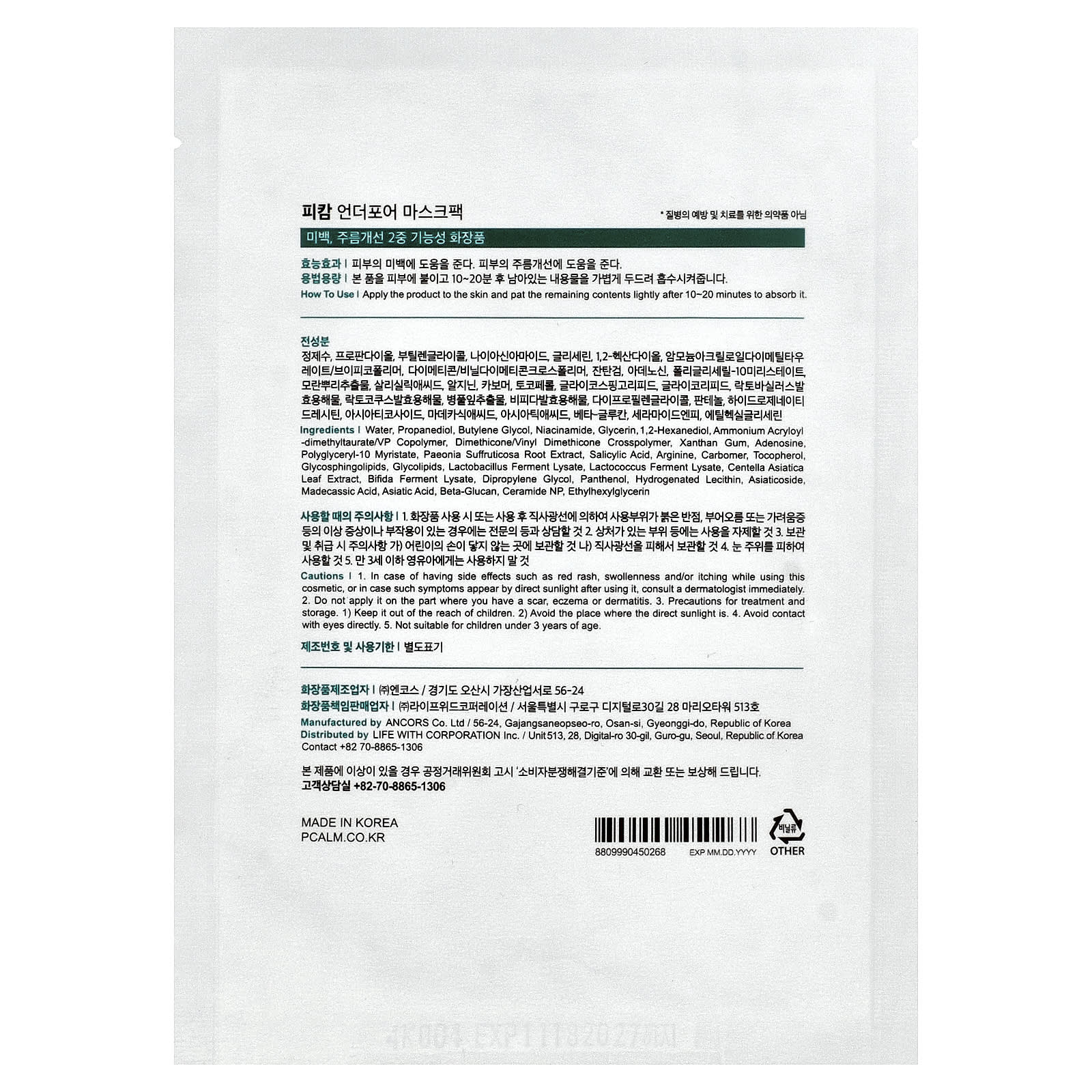 P.CALM Pacote de Máscaras de Beleza UnderPore 1 Unidade 30 ml (101 fl oz) – P.CALM Beleza Máscaras Faciais de Beleza Máscaras Faciais Máscaras em folha K-Beauty.