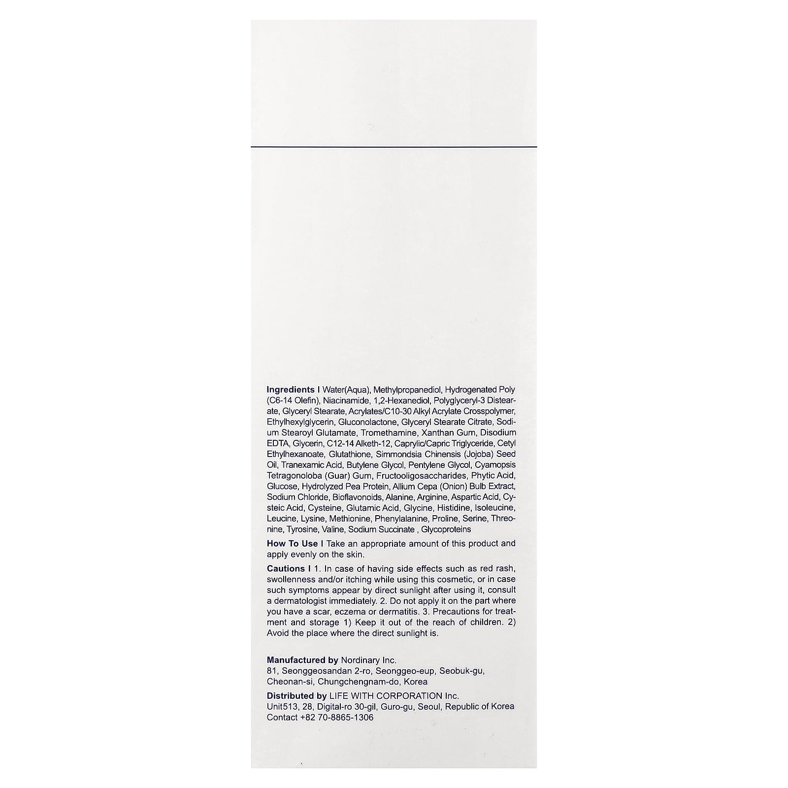- Em caso de efeitos colaterais, como irritação, inchaço e/ou coceira ao usar este cosmético, ou se esses sintomas surgirem ao se expor a luz solar direta após o uso, consulte um dermatologista imediatamente.