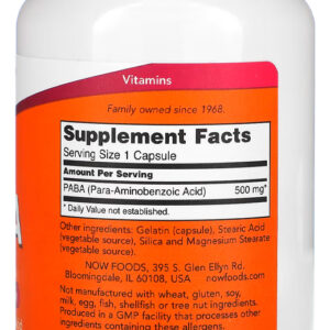 Paba 500mg Now Foods 100 Cápsulas Importado