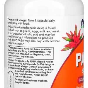 1. Suporte Nutricional Essencial: As 100 cápsulas de Paba 500mg Now Foods fornecem um suporte nutricional essencial para promover o bem-estar geral do corpo, contribuindo para diversas funções metabólicas e fisiológicas.