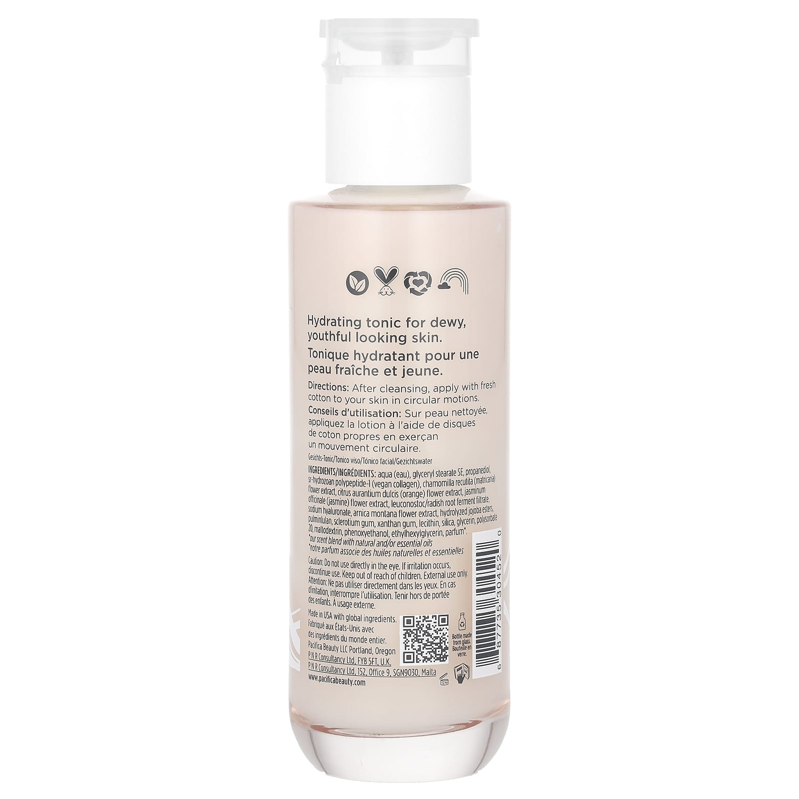 Pacifica Colágeno Vegano Tônico de Leite Hidratante Flor de Laranjeira Sem Álcool 140 ml (47 fl oz) – Pacifica Beleza Limpeza Facial Loções tônicas.