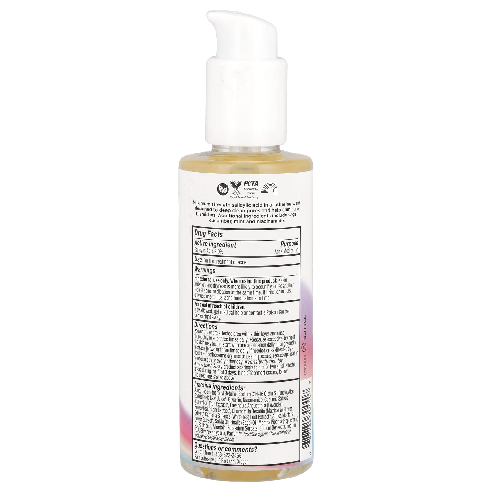 Pacifica Sabonete Líquido para Proteção contra Acne 172 ml (58 fl oz) – Pacifica Beleza Limpeza Facial Sabonetes Faciais Beleza por Ingrediente Cuidado para a pele com niacinamida.