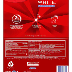 BW5EXP Remova 5 anos de manchas* usando o creme dental branqueador de dentes Colgate Optic White Advanced Hydrogen Peroxido. Use este pacote de creme dental com peróxido de hidrogênio com uma fórmula à base de 2% de peróxido de hidrogênio para clarear além das manchas superficiais. Feito com um sabor fresco de branco espumante, o creme dental branqueador avançado Colgate Optic White remove eficazmente as manchas de chá, café e vinho** para que você possa obter um sorriso brilhante. O creme dental Colgate Optic White Advanced Hydrogen Peroxido é um creme dental branqueador patenteado com 2% de peróxido de hidrogênio que remove manchas superficiais e é seguro para esmalte. Este creme dental branqueador de dentes para adultos também é um creme dental anticavitário com flúor para ajudar a prevenir cáries. Para um clareamento que funcione, escolha o creme dental Colgate Optic White Advanced Hydrogen Peroxido. Vá além das manchas superficiais com este pacote de creme dental a granel da pasta de dente Colgate Optic White Advanced. O creme dental com peróxido de hidrogênio branco Colgate Optic é um creme dental de menta sem glúten com uma fórmula patenteada de 2% de peróxido de hidrogênio que é segura para o esmalte.