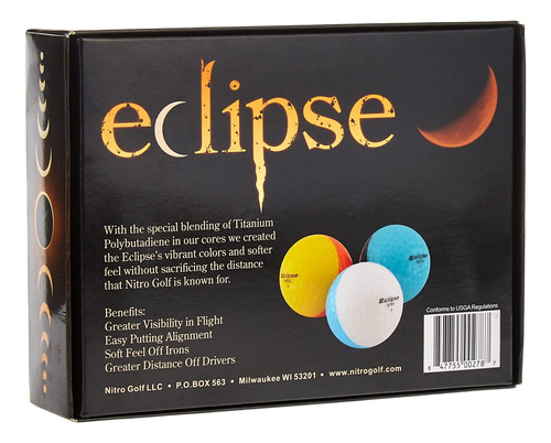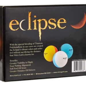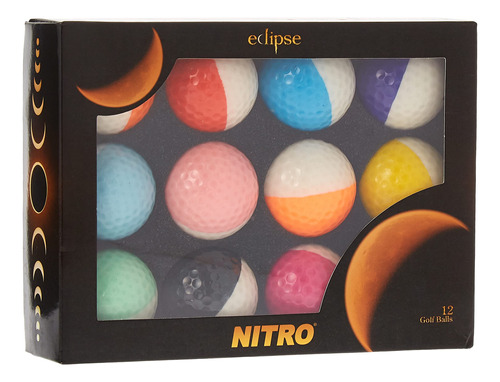 Nitro Eclipse 12-Pack Golf Balls (Assorted Colors) – Greater Visibility in flight – Easy Putting Allignment – Soft Feel off irons – Greater Distance Drivers