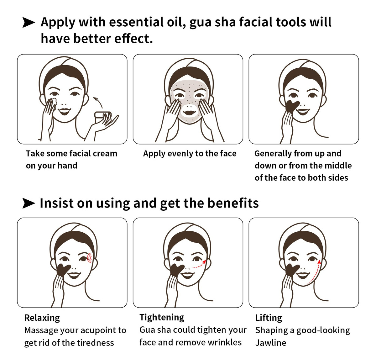 Descrição A pedra facial gua sha é feita de jade natural de alto nível e polida cuidadosamente por finos artesãos. Como excelente ferramenta para a pele, as ferramentas faciais gua sha podem ajudar a remover rugas e antienvelhecimento. A ferramenta Guasha para rosto também pode eliminar a fadiga e afrouxar os músculos. Design exclusivo com borda lisa, a pedra gua sha pode ser usada em todas as partes do corpo e proporcionar uma experiência de uso inesquecível. Um pacote delicado de pedra guasha é uma boa opção como presente para expressar seus melhores desejos. Shining Points: Alta qualidade: a ferramenta Guasha é feita de obsidiana natural e jade Ferramenta facial: as ferramentas Gua sha podem reduzir o inchaço, promover a circulação sanguínea, endurecer a pele Massagem corporal: a pedra Gua sha é uma ótima ferramenta para relaxar o corpo Polida à mão: Cada pedra facial é cuidadosamente polida pelo artesão Pacote requintado: A ferramenta Gua sha vem com uma linda caixa de presente com bolsa de feltro Guia de uso: O manual de instruções está incluído com ferramentas faciais gua sha Informações sobre o produto: Dimensões do item: 3,0 * 2,2 * 0,27 polegadas/7,8 * 5,7 * 0,7 cm Peso do item: 86 g/3,03 onças Dimensões da embalagem: 5,1 * 3,9 * 0,7 polegadas/13 * 10 * 1,7 cm Peso da embalagem: 132 g/4,66 onças Com que frequência de uso: Nossa ferramenta guasha para rosto pode ser um remédio rápido para inchaço e linhas finas, mas resultados duradouros são melhor mantidos com uma pedra gua sha consistente. Dicas de uso: 1. Antes da gua sha, limpe a pele primeiro. 2. Usar ferramentas faciais gua sha com creme facial ou corporal terá um efeito melhor. 3. Depois de usar a ferramenta guasha no rosto, mantenha-se aquecido e não tome banho imediatamente. 4. O processo de gua sha faz com que o suor seja excretado, beber um copo de água quente pode repor a água e promover o metabolismo. – Catch Your BeautyGua sha pode ser uma excelente adição à sua rotina de beleza. O uso adequado das ferramentas faciais gua sha pode estimular a circulação sanguínea, o que pode ajudar a diminuir o inchaço, endurecer a pele e combater o envelhecimento. A ferramenta Guasha para rosto ajudará você a ter a melhor aparência para sempre. – Material natural As ferramentas faciais gua sha são feitas de obsidiana e jade naturais, respectivamente, tornando-as confortáveis para raspar a pele. A pedra Gua sha é polida manualmente para garantir que a borda seja lisa e fácil de usar. Oferecemos 180 dias de serviço pós-venda. Em caso de dúvida, entre em contato conosco. – Pedra facial em forma de coração A ferramenta guasha em forma de coração, tamanho ideal e peso é uma inovação de design, excelente para a rotina de autocuidado da pele com uma mão. Diferentes bordas das ferramentas gua sha podem ser usadas em várias áreas faciais e corporais. – Pacote de presente excepcional. A pedra Guasha é embalada em uma linda caixa de presente junto com uma sacolinha, o que a torna uma excelente opção para alguém em aniversários ou aniversários. Incluída na bolsa está uma ferramenta guasha para instruções faciais que descreve como fazer gua sha. – Seja linda todos os dias A pedra facial gua sha é uma excelente ferramenta que pode eliminar o cansaço e aliviar a rigidez muscular. De manhã, você pode usar ferramentas faciais gua sha para minimizar o inchaço ou fornecer uma massagem calmante antes de dormir.