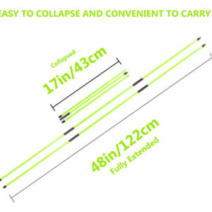 Bastão de alinhamento de golfe Asyxstar — auxiliar de alinhamento de palitos de golfe de 48", pacote com 2 varas de alinhamento de golfe para mirar, colocar, treinar swing completo, corretor de postura Auxiliar de treinamento de golfe com estojo transparente — Bastões de alinhamento de golfe: melhore seu alinhamento e postura, bastão de alinhamento de golfe projetado para manter seus ombros alinhados adequadamente com seus pés e quadris, o conjunto de bastões de alinhamento de golfe inclui 2 bastões de alinhamento de golfe para melhorar o treinamento que depilarão retira seu placar, facilitando que a bola caia mais perto do gol. – Varas versáteis de alinhamento de golfe: bastões de alinhamento usados para giro completo, jogo curto, arremesso e configuração, pontaria, tacada, treinador de giro completo, corretor de postura, bastões de treinamento de golfe ideais para ambientes internos e externos. – Design prático de golfe: os bastões de golfe apresentam uma ponta pontiaguda para serem facilmente fixados no chão e configurados para golpear a bola e muito mais, tampa de segurança de borracha na outra extremidade. – Transporte descomplicado: bastões de alinhamento compactos dobráveis em 3 seções Podem ser facilmente armazenados em qualquer saco de golfe, eles vêm com um tubo de armazenamento transparente onde você pode guardar suas varas enquanto viaja ou quando eles não estão em uso. – Treinamento de golfe com bastão de alinhamento: bastões de prática de golfe garantem postura adequada, alinhamento da bola, alinhamento do taco e plano de giro para obter o impacto ideal. Cria uma rotina de alinhamento consistente durante a configuração pré-swing.