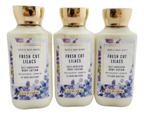 Bath and Body Works Trabalha com 3 pacote para a loção para o pacote. 24 onças de onça cada garrafa. A fragrância é lilás fresca. (A garrafa pode variar como sazonalmente atualizada pelo fabricante). [features] Color: Marca: Bath & Body Works Dimensiones: 0.088 x 0.186 x 0.133 mts Peso del Producto: 0.872 Kilogramos. Peso de Envio: 0.872 Kilogramos. Modelo: Garantia do vendedor: 30 dias