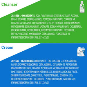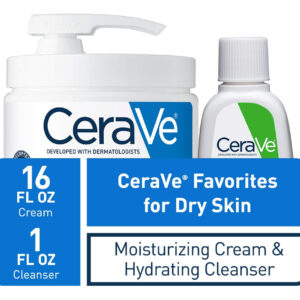 Pacote combinado de creme hidratante CeraVe | Contém 16 onças com bomba e 1 onça de limpador facial hidratante. Tamanho da amostra — [CREME HIDRATANTE E PACOTE DE LAVAGEM FACIAL HIDRATANTE] Contém 16 onças de creme hidratante CeraVe com conveniente tampa de bomba. O pacote combinado inclui uma amostra do limpador facial hidratante CeraVe – [CERAMIDAS ESSENCIAIS] As ceramidas são encontradas naturalmente na pele e compõem 50% dos lipídios na barreira cutânea. Todos os produtos CeraVe são formulados com três ceramidas essenciais (1, 3, 6-II) para ajudar a restaurar e manter a barreira natural da pele – [ALÍVIO DA PELE SECA] A deficiência de ceramidas na pele geralmente pode estar associada à pele seca, que pode causar coceira e parecer escamosa. Foi demonstrado que o creme hidratante CeraVe aumenta o nível de ceramidas na pele após 4 semanas – [RECOMENDADO PELO DERMATOLOGISTA] O CeraVe Skincare é desenvolvido com dermatologistas e tem produtos adequados para pele seca, pele sensível, pele oleosa, propensa a acne e muito mais – [SUAVE NA PELE] Ambos os produtos incluídos no pacote são isentos de fragrâncias, testados para alergias, não comedogênicos e adequados para uso no rosto e/ou corpo
