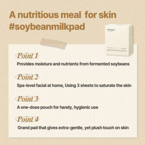 Almofada embebida em essência para um impulso refrescante, hidratante e nutritivo. – Almofada de leite de soja: almofada portátil de embalagem múltipla que é higiênica e pode ser usada em qualquer lugar. Existem 3 folhas em um pacote. Cheio de essência que é fresca, hidratante e nutritiva. – Textura: lençol de máscara com textura de essência – Ingredientes principais: o extrato de fermentação de soja mantém a pele hidratada e fresca. – Como usar: limpe a pele com um lado da embalagem e coloque os lençóis em qualquer lugar necessário no rosto, incluindo pescoço. Adie após 10 minutos e bata suavemente no rosto até a absorção.
