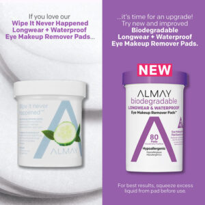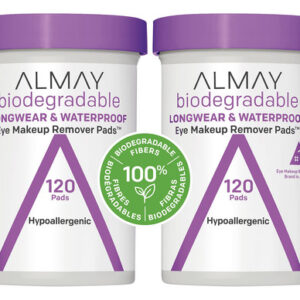 Almofadas removedoras de maquiagem biodegradáveis Almay, duradouras e impermeáveis, hipoalergênicas, sem perfume, testadas por dermatologistas e oftalmologistas, pacote com 2 — BIODEGRADÁVEIS: o mesmo cuidado para olhos e pele sensíveis, agora em uma almofada biodegradável. Adora nossas almofadas removedoras de maquiagem impermeáveis e de longa duração? Agora com um novo visual e feito com almofadas biodegradáveis! – Remoção de maquiagem de olhos à prova d’água e de longa duração: limpe todos os traços de maquiagem dos olhos com um rímel impermeável e fácil de usar; sem necessidade de enxágue – Limpeza suave e eficaz: nossos removedores de maquiagem para os olhos são tão suaves para a delicada área dos olhos quanto eficazes para limpar sem puxar ou puxar – FORMULADOS SEM: parabenos, ftalatos, SLS, DMDM, hidantoína, formaldeídos, e triclosan — adequado para olhos sensíveis: como parte da promessa da Almay, este produto é hipoalergênico e testado por oftalmologistas, além de limpo, livre de crueldade e fragrância gratuito; também é adequado para olhos sensíveis e usuários de lentes de contato