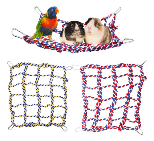 pequenos. Brinquedos de escalada para animais pequenos: o pacote de rede de corda de algodão para animais pequenos contém ganchos de aço inoxidável. Você pode pendurar diretamente a rede de algodão na gaiola do animal de estimação em qualquer ângulo ou maneira que desejar, proporcionando a ele um espaço divertido de escalar e brincar.