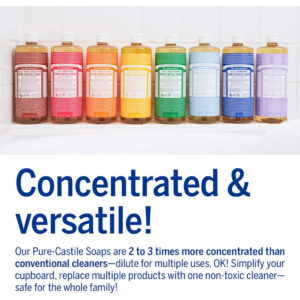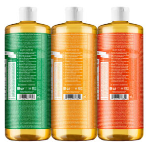 Os sabonetes Dr. Bronners, conhecidos por sua qualidade, versatilidade e respeito ao meio ambiente, são totalmente veganos e certificados como orgânicos pelo USDA. Esses produtos usam apenas os ingredientes orgânicos mais puros e de comércio justo, sem conservantes sintéticos, detergentes ou agentes espumantes. Este conjunto inclui 3 aromas diferentes de sabonete líquido de castela pura: hortelã, sem perfume para bebês e lavanda. Nosso aroma cítrico é uma mistura revigorante de óleos orgânicos de laranja, limão e lima. O aroma de amêndoa é quente, reconfortante e levemente adocicado, como maçapão ou amaretto. Amadeirado e medicinal, nosso sabonete líquido de castela pura de melaleuca contém óleo de melaleuca puro, bom para peles com tendência a acne e caspa! Nossos sabonetes de Castela Pura nunca são testados em animais e são totalmente livres de crueldade. Feito com ingredientes orgânicos e certificados de comércio justo, embalados em uma garrafa 100% reciclada pós-consumo. Tudo um! – ESTE PACOTE VARIADO INCLUI: 3 aromas: amêndoa, frutas cítricas e melaleuca (32 onças por garrafa). Os sabonetes líquidos de castela pura Dr. Bronner são feitos com mais de 70% de ingredientes orgânicos. – ÓLEO DE PALMISTE ORGÂNICO E DE COMÉRCIO JUSTO: cultivado por pequenos agricultores bem pagos no Equador para garantir técnicas de colheita sustentáveis que não danifiquem os habitats locais, fornecendo a espuma macia e cremosa de nossos sabonetes e beneficiando as pessoas e o planeta. – SEM CONSERVANTES SINTÉTICOS, DETERGENTES OU AGENTES ESPUMANTES: Nossos sabonetes líquidos são feitos com ingredientes à base de ingredientes, você pode pronunciar conservantes, espessantes ou agentes espumantes não sintéticos, o que é bom para o meio ambiente e ótimo para sua pele! – 3 VEZES MAIS CONCENTRADO DO QUE A MAIORIA DOS SABONETES LÍQUIDOS: Dilua! Dilua! Vários usos para apenas um produto: lavanderia, esfregar, lavar pratos à mão, limpeza multiuso, lavar animais de estimação e muito mais. Mais sabão por garrafa significa menos desperdício na embalagem! – EMBALADO EM GARRAFAS PLÁSTICAS RECICLADAS 100% PÓS-CONSUMO: A Dr. Bronner's está desviando o plástico descartado dos aterros sanitários usando e aumentando a demanda por garrafas plásticas recicladas. Isso elimina o desperdício e tem um impacto ambiental positivo!
