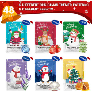 Pacote com 48 máscaras faciais de Natal para encher meias Nosso conjunto de 48 máscaras faciais de Natal para a pele tem um total de 6 aromas diferentes, mel, lavanda, pérola, tomate, aloe. Existem lindos padrões de Natal na embalagem da máscara facial. A máscara facial é muito adequada para o tema de Natal, são os presentes de Natal a granel perfeitos: Papai Noel, árvore de Natal, boneco de neve, pinguim, rena, presente de Natal são essenciais durante o Natal Temporada. Cada máscara facial tem um elemento exclusivo de Natal, que é uma meia muito adequada para o Natal, dando a elas um tratamento facial de Natal máscara para familiares, amigos e colegas certamente fará com que se sintam calorosos e felizes — Máscaras faciais para cuidados com a pele: nosso conjunto de 48 máscaras faciais de Natal tem um total de 6 aromas diferentes: lavanda, aloe, pérola, mel, tomate. A embalagem da máscara facial contém lindos padrões de Natal. A máscara facial é muito adequada para o tema de Natal, são os presentes de Natal perfeitos a granel — Lindos designs de embalagem: Papai Noel, árvore de Natal, renas boneco de neve, pinguim, presente de Natal são essenciais durante a época de Natal. Cada máscara facial tem um elemento de Natal único, que é Meias muito adequadas para o Natal. Oferecer essas máscaras faciais de Natal para familiares, amigos e colegas certamente fará com que se sintam aquecidos e felizes. Perfeitas para encher meias: essas máscaras faciais de Natal para a pele são meias perfeitas, seja colocá-las em meias de Natal ou presenteá-las a amigos, familiares ou mulheres, todas são presentes de Natal ideais. Compartilhar essas máscaras faciais com amigos deixará uma boa lembrança – Presente de Natal ideal: as máscaras faciais são uma embalagem divertida inspirada nas festas de fim de ano e seriam perfeitas para estocar roupas, o estilo exclusivo de embalagem de Natal tem um significado comemorativo especial. Elas são muito adequadas para decoração de interiores e exteriores durante a época de Natal e para trocar presentes umas com as outras. Ótimo efeito para a pele: essas máscaras faciais são hidratantes de usar e são ótimas para a pele. Cada uma de nossas máscaras faciais tem efeitos específicos em diferentes problemas de pele, independentemente de você ter pele seca, oleosa ou sensível. As máscaras faciais em massa ajudam a hidratar e aliviar a pele seca e suavizar a pele