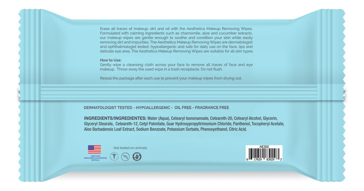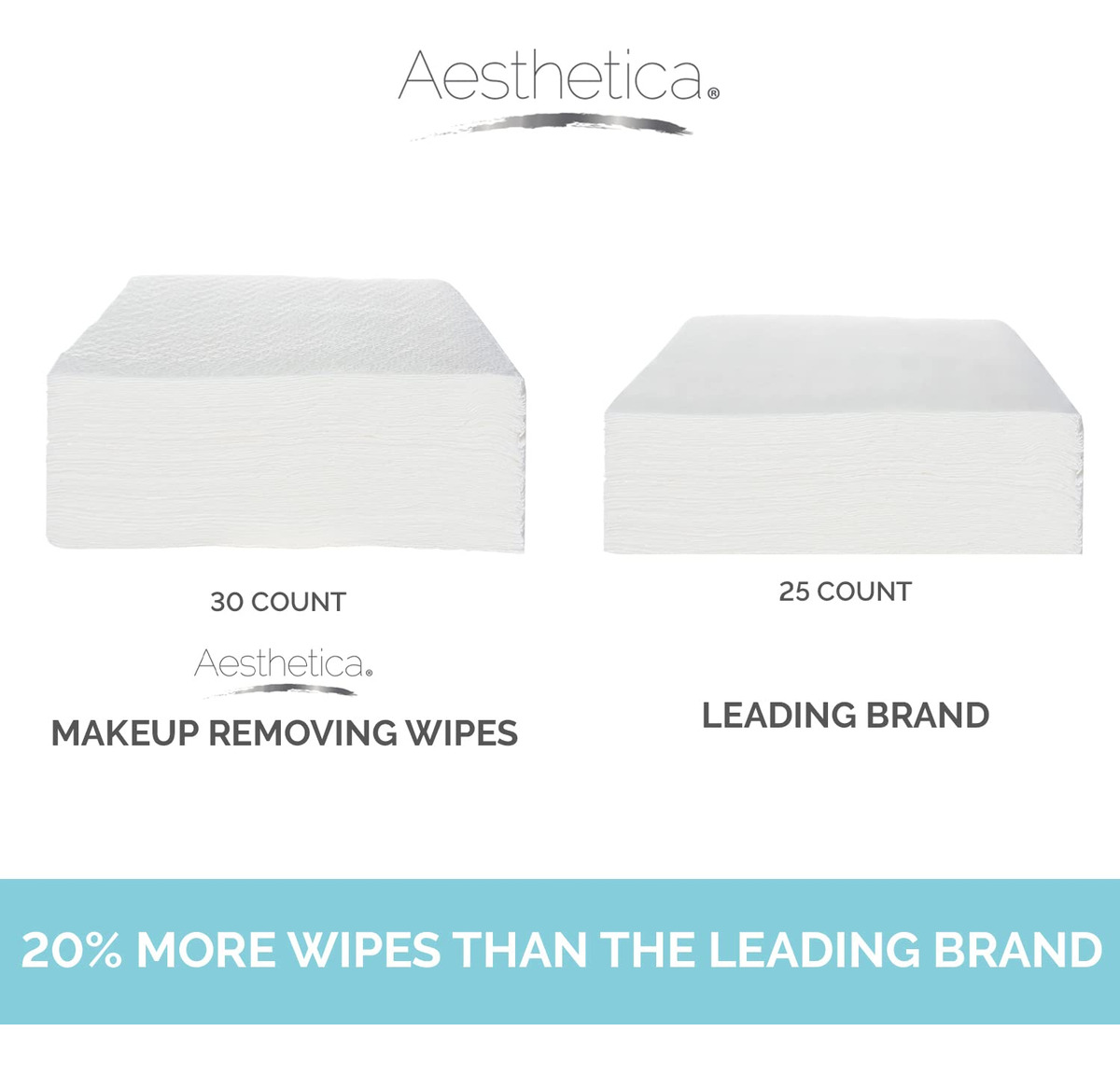 Apague todos os vestígios de maquiagem, sujeira e óleo com os toalhetes removedores de maquiagem Aesthetica. Formulados com aloe, nossos toalhetes removedores de maquiagem são suaves o suficiente para acalmar e condicionar sua pele enquanto removem rapidamente a sujeira e as impurezas. Os toalhetes removedores de maquiagem Aesthetica são dermatologistas, hipoalergênicos e seguros para uso diário no rosto, lábios e área delicada dos olhos. Nossos toalhetes removedores de maquiagem são adequados para todos os tipos de pele. Características: Dissolve toda a maquiagem, sujeira e óleo para revelar uma pele fresca e limpa Uma fórmula sem perfume que é super suave para a pele e boa para todos os tipos de pele. Hipoalergênico Remove a maquiagem à prova d'água dos olhos e pode ser usada com segurança por usuários de lentes de contato. Contém aloe para fins calmantes e hidratantes. Testado e aprovado por dermatologistas para uso seguro no rosto e na delicada área dos olhos. Um lenço umedecido para viagens significa não se preocupar com derramamentos ou vazamentos. Feito com responsabilidade para ser vegano e livre de crueldade – passe suavemente um lenço desmaquilhante Aesthetica no rosto para revelar uma pele fresca e limpa. Os toalhetes de limpeza aderem a todos os vestígios de maquiagem, sujeira e óleo, deixando seu rosto livre de detritos. Ele ainda remove o rímel e o delineador à prova d'água com facilidade, sem precisar esfregar e machucar a pele ao redor dos olhos. – A fórmula sem perfume é super suave e adequada para todos os tipos de pele. Nossos toalhetes removedores de maquiagem são hipoalergênicos e testados para uso seguro por dermatologistas. Ótimo para quem tem pele e olhos sensíveis, incluindo usuários de lentes de contato, o que o torna o removedor de maquiagem perfeito. – Formulado com aloe, os lenços de maquiagem Aesthetica removem a maquiagem sem irritar a pele. Os panos refrescantes ajudam a lubrificar e suavizar a pele sem deixá-la seca ou esticada. – Nunca se preocupe com derramamentos ou vazamentos com nossa embalagem ideal para viagens. Os toalhetes removedores de maquiagem Aesthetica incluem 30 panos removedores de maquiagem que podem ser usados em casa ou em qualquer lugar. – Os toalhetes removedores de maquiagem Aesthetica são veganos e livres de crueldade para sua tranquilidade.