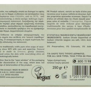 Papoutsanis Pure Greek Olive Oil Castile Bar Soap – Unscented – Hypoallergenic – Cold Pressed – Imported from Greece – 8.8 oz Bars Pack of 4 (35.2 oz total) – Pure, simple and natural ingredients. Our olive oil bar soap is made up of only 4 simple ingredients – 86% olive oil, water, sea salt, citric acid (ph balancer) These high quality, raw, organic ingredients are crafted into deluxe skincare. – Perfect for sensitive skin. This fragrance free bar soap will hydrate your skin with the assistance of the natural olive oil composition that leaves your skin feeling soft and supple throughout the day. – Non-GMO, vegan, and cruelty free. This product has never been tested on animals. Our olive oil bar soaps are specially crafted in Greece to be 100% vegan, chemical free with no SLS and harsh chemicals. – Papoutsanis hypoallergenic olive oil bar soap provides ultra moisturizing cleansing power in a natural way. We are committed to living sustainably while providing luxurious skincare. – Long lasting – Fragrance free – Vegan – Antioxidant rich – Hyper moisturizing – Hypoallergenic – Castile bar soap – Product of Greece