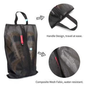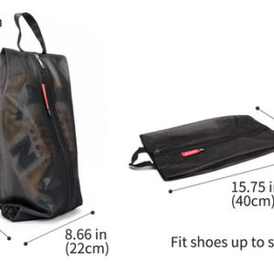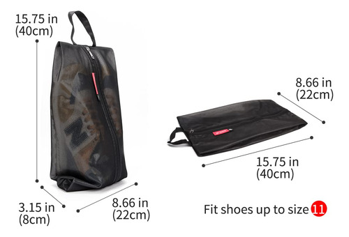 Bolsas de sapatos resistentes à água para viagens, bolsa organizadora de armazenamento com zíper, multicolorida para homens e mulheres — RESISTENTE À ÁGUA — Esta bolsa é feita de excelente material de malha composta de poliéster e TPU (exceto a parte do zíper); o material é resistente à água para ajudar a evitar que sua bolsa respingue água. (ATENÇÃO* A parte do zíper não é resistente à água. Por favor, NÃO o coloque debaixo d'água) — Tamanhos e cores — Tamanho normal: 15,7 polegadas x 8,7", serve para sapatos de até o tamanho 11; tamanho grande: 17,7 polegadas x 9,8", grande o suficiente para sapatos entre 13 e 16. Cinco cores perfeitas para sua escolha: perfeitas para sapatos femininos e masculinos. – PORTÁTIL – Design de alça resistente que é mais conveniente de transportar; zíper personalizado especializado com dentes de zíper lisos e excelentes serve para manter seus pertences armazenados com segurança e ajuda a levá-los quando necessário. – PROTEÇÃO – Esta bolsa de sapatos ajuda a manter seus sapatos livres de poeira e a proteger os sapatos de manchas. Mantenha o cheiro dos sapatos no interior e separe as manchas nos sapatos de outras roupas para garantir que outras roupas estejam arrumadas. – VISÍVEL – Design de malha translúcida para identificar os sapatos na bolsa de forma eficaz e fácil. É extremamente útil para uso doméstico e viagens. Nota: A bolsa de sapatos branca é feita de material de nylon ultraleve.