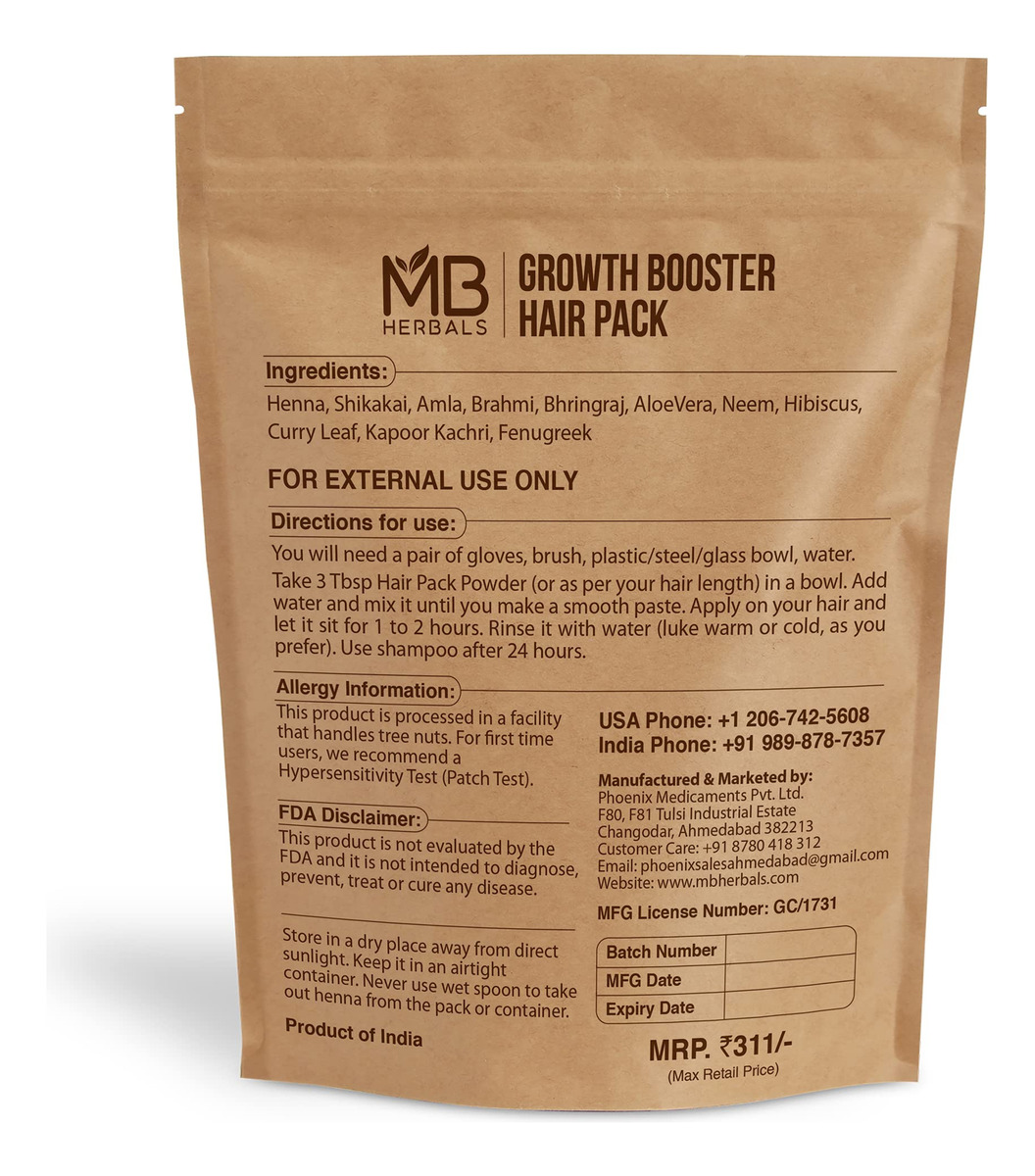 Pacote De Cabelo Mb Herbals Growth Booster 250g Henna Shikak