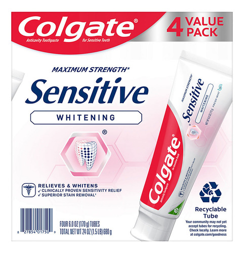 Inclui creme dental clareador sensível, 4 unidades/6 onças.