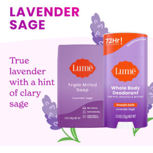 Pacote: 1 desodorante sólido mais 1 barra de sabonete – PACOTE CHEIRE MELHOR EM QUALQUER LUGAR – Para covas, partes íntimas e muito mais do que pés, seios, umbigos, dobras abdominais, rachaduras nas nádegas, rugas nas coxas ou em qualquer outro lugar onde você tenha odor, mas gostaria de não ter. – Extremamente eficaz – Está clinicamente comprovado que o desodorante Lume controla o odor por 72 horas. Também está comprovado que esfolia, uniformiza visualmente o tom da pele e diminui a aparência da hiperpigmentação. – DESENVOLVIDO PELA CIÊNCIA – Nossa fórmula de desodorante tem pH otimizado para bloquear o odor antes que ele comece. Você pode até nos chamar de Preodorant! Certos desodorantes tradicionais simplesmente mascaram ou neutralizam o odor após sua formação. – ADORAM A PELE – O desodorante e o sabonete são desenvolvidos por médicos e seguros para qualquer uso externo. Formulado sem alumínio, bicarbonato de sódio, parabenos, ftalatos, SLS (laurilsulfato de sódio) e corantes artificiais. – LAVENDER SAGE – O aroma exclusivo original de Lumes combina lavanda calmante com um toque de sálvia. É um clássico! Nosso desodorante Smooth Solid desliza em qualquer lugar onde você queira controlar o odor.