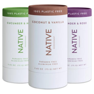 Limpo. Simples. Eficaz. Desodorante sem plástico. Ingredientes de origem natural – Pegamos o que a Mãe Terra fez e fizemos com que fizesse maravilhas. Livre de crueldade e vegano – Só testamos nossos produtos em animais festeiros (humanos voluntários). Nascida nos EUA – A Native foi fundada em São Francisco e todos os nossos produtos são fabricados nos EUA. – 3 aromas – Lavanda e rosa, o aroma de lençóis limpos, com um toque de pó fresco. Um perfume leve e sutil que você com certeza vai adorar. Coco e baunilha: a doçura sutil da baunilha com o toque praiano do coco. Uma dupla tropical com um aroma clássico e doce. Pepino e hortelã É uma festa no jardim e os únicos aromas convidados são crocantes, limpos e refrescantes. – Proteção eficaz – Testamos milhares de ingredientes antes de encontrar uma receita que pareça leve e fresca sob seus braços, mas que ofereça proteção eficaz contra odores. – Goes On Easy – Native Deodorant é um desodorante sólido que você pode aplicar facilmente. Também usamos fragrâncias seguras, sintéticas e sustentáveis (sem ftalatos) e fragrâncias naturais. – Livre de crueldade – O desodorante nativo nunca é testado em animais, exceto em humanos que se voluntariam para experimentar o desodorante Native. – Para homens e mulheres – A fórmula premiada de alto desempenho da Native é forte o suficiente para homens e mulheres. Tudo o que você precisa escolher é o seu perfume favorito.