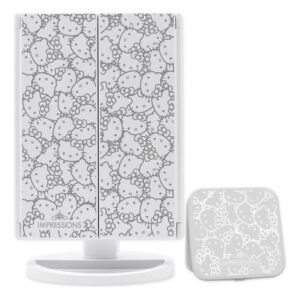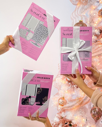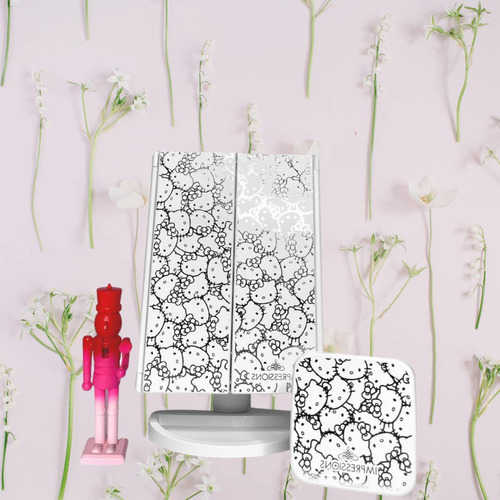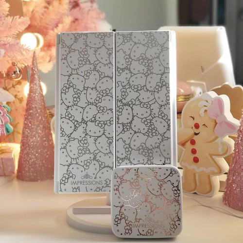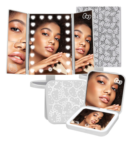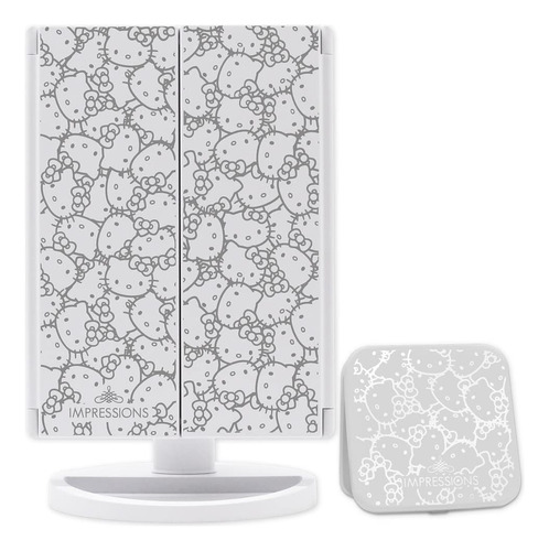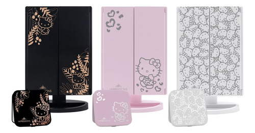 Pacote compacto e triplo Impressions Vanity Hello Kitty Supercute. Capte todos os detalhes com o espelho de maquiagem tricolor LED trifold da Hello Kitty com ampliação e o espelho compacto Supercute. Os três painéis espelhados do espelho triplo são facilmente ajustáveis às suas necessidades exclusivas de iluminação de maquiagem. Especialmente selecionados para cobrir você de qualquer ângulo ou local. Disponível em rosa, branco ou preto. Características especiais: Espelho compacto Hello Kitty Supercute com ampliação Sensor de toque suave Interruptor dimmer: toque para ligar ou desligar Mantenha pressionado para ajustar o brilho Iluminação LED diurna ultrabrilhante. Espelhos duplos: espelhos superiores ampliados de 1x e 2x. Gráficos de alumínio exclusivos da edição Hello Kitty Espelho de maquiagem LED tricolor Hello Kitty com ampliação Iluminação LED com 3 temperaturas de cor: tons de luz frios a naturais ou quentes Interruptor de sensor de toque suave frontal com função de escurecimento, basta tocar para ligar e desligar ou mantê-lo pressionado para escurecer ou iluminar Três painéis de espelho ajustáveis, incluindo espelhos de perto ampliados Painel lateral de ampliação 2X e 3X. Gráficos em alumínio Exclusivo da edição Hello Kitty Design leve e portátil que você pode levá-lo para qualquer lugar Conecte o USB em casa!! Em cada ocasião ou dia especial, nosso conjunto de toucador desempenha um papel especial em sua vida e facilita sua vida! -: Nossos espelhos de mesa são projetados com acrílico leve. Portanto, é fácil continuar sua viagem. Essa penteadeira de maquiagem cosmética inteligente para iluminação proporcionará a experiência de viagem autêntica que você sempre desejou -: O fofo compacto da Hello Kitty continha um sensor de toque suave para ligar ou desligar e pressionado para ajustar o brilho. O espelho de maquiagem LED triplo da Hello Kitty também serve para escurecer, ligar e desligar -: Os espelhos de aumento duplos têm espelhos superiores ampliados de 1x e 2x no espelho compacto Hello Kitty Supercute. Além disso, o espelho de maquiagem Hello Kitty Trifold LED Tri Tone tem um painel lateral com ampliação de 2X e 3X -: O design em forma de Hello Kitty é exclusivo para espelhos de maquiagem e é auto-satisfatório. O mini bolso compacto e o espelho de vidro dobrável de três vias serão uma das suas coleções favoritas da Hello Kitty