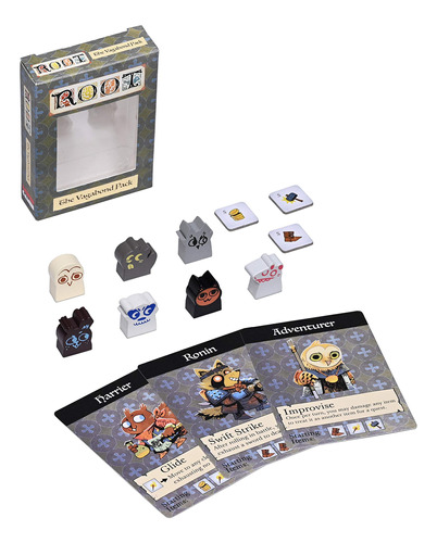 Leder Games | Root: The Vagabond Pack – Atualize seu jogo Root com sete meeples Vagabond personalizados – Three NEW Vagabonds: Dash and slash with the Ronin, Quest more with the Adventurer e Fly free with the Harrier – Você precisará do jogo base Root para usar este produto – Seven Custom Vagabond Meeples!