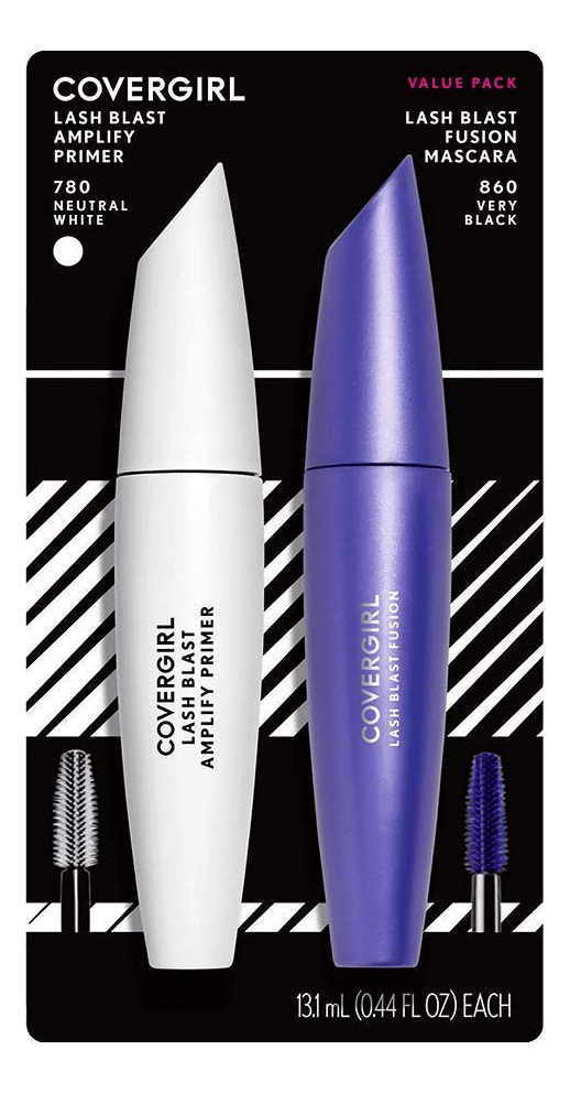 Máscara COVERGIRL Lash Blast Fusion e pacote de primer de cílios COVERGIRL Lash Blast Amplify, MUITO PRETO, 0,44 FL Oz (pacote com 2) — ALONGUE ESSES CÍLIOS: obtenha cílios mais longos e cheios com este rímel volumizador — FÓRMULA FIBERSTRETCH: a fórmula de rímel com propriedades de elasticidade da fibra faz com que cada cílio pareça maior e mais longo – PINCEL GRANDE: O pincel de rímel exclusivo atinge todos os cílios para oferecer uma aparência ousada e inovadora – INSTANT LASH BOOST: o primer para cílios maximiza a aparência do rímel enquanto fortalece os cílios com argan nutritivo, jojoba e óleos de coco — SEM CRUELDADE: os produtos Covergirl têm a certificação Leaping Bunny da Cruelty Free International, o que significa que nunca são testados em animais