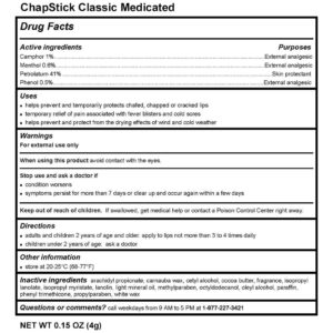 Pacote de recarga ChapStick Classic Medicated, 0,15 onças, 12 palitos — Confie seus lábios à ChapStick, especialista em cuidados labiais há mais de 125 anos — Suaviza e suaviza os lábios — Ajuda a prevenir e curar lábios secos e rachados — Contém cânfora, mentol refrescante e fenol para aliviar a dor