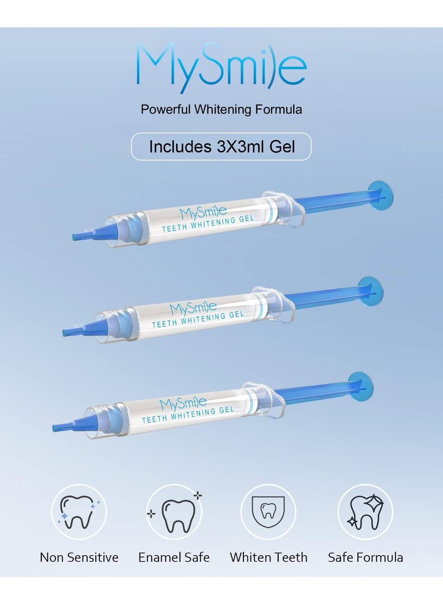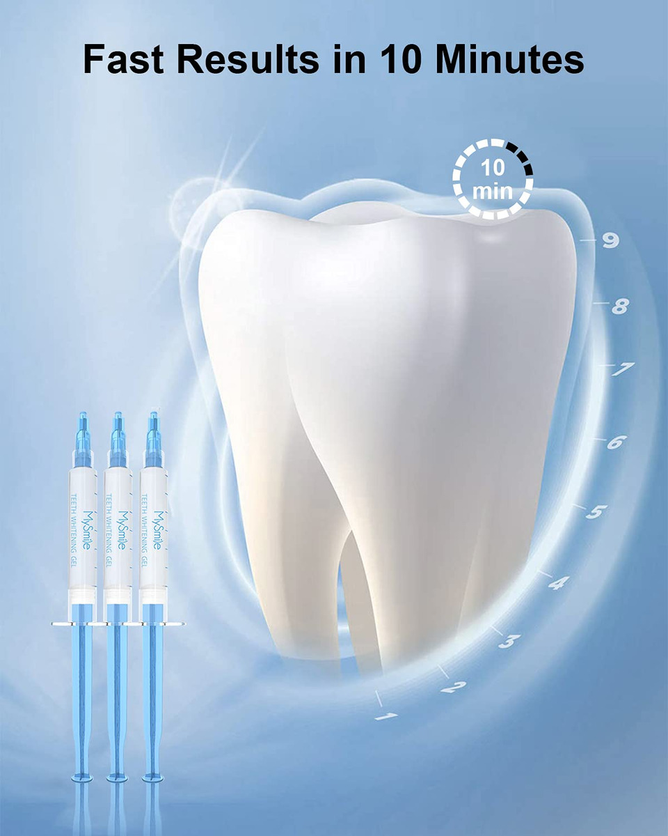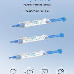 Gel clareador de dentes MySmile Clareamento rápido de dentes de até 10 tons Kit de clareamento dentário em 10 minutos Kit de clareamento dentário para dentes sensíveis Nossa fórmula especial de clareamento dental não sensível com peróxido de carbamida o torna perfeito para dentes sensíveis, resultados clinicamente comprovados com milhões de clientes satisfeitos. Por que escolher MySmile A fórmula especial de clareamento dental é adequada para dentes sensíveis. Ajuda a remover manchas de vinho, café, refrigerante, fumo, alimentos. Bandejas bucais de silicone de qualidade alimentar e sem BPA para clarear os dentes. Fácil de limpar O clareamento dentário funciona em coroas? Os géis clareadores de dentes funcionam apenas em seus dentes naturais e não terão nenhum efeito positivo em implantes dentários, coroas, dentaduras ou obturações. O kit inclui (3) 3 ml de gel clareador dentário 1 guia de tonalidades para clareamento dentário 1 manual – KIT DE CLAREAMENTO DENTÁRIO DE LUXO Nossa caneta de gel clareador dental Deluxe ajuda a remover manchas de dentes de alimentos, café, vinho, refrigerante, fumo e muito mais. – 10 minutos de clareamento dentário com resultado rápido Nosso gel clareador dental torna sua experiência de clareamento dental super rápida, apenas 10 minutos por dia. A maioria dos clientes obtém 2 tons ou mais de resultados de clareamento após a primeira aplicação do MySmile. – CANETA DE GEL CLAREADOR DE DENTES PARA DENTES SENSÍVEIS Nossa fórmula especial de clareamento dental não sensível com peróxido de carbamida a torna perfeita para dentes sensíveis, resultados clinicamente comprovados por milhões de clientes satisfeitos. – FÁCIL DE USAR COM A RECOMENDAÇÃO DO DENTISTA Nossa conveniente caneta de gel clareador dental infalível pode ser usada com segurança em casa, no escritório e fácil de transportar durante viagens. – GARANTIA DE SATISFAÇÃO Acreditamos tanto em nossos produtos que, se você não estiver satisfeito por qualquer motivo, o reembolso será emitido imediatamente, você não precisa se preocupar e nós estamos de volta!