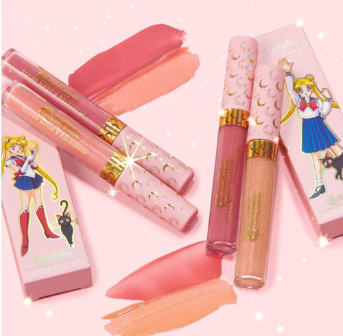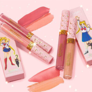 O pacote Moonlight Lip inclui o Sailor Moon Ultra Glossy Lip, um brilho coral rosado com pontas douradas, e o Bun Head Ultra Blotted Lip, um lábio rosa rosado transparente.