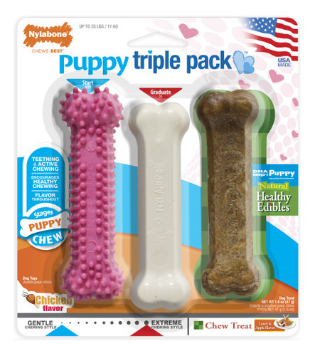 Pacote Triplo De Brinquedos E Guloseimas Nylabone Puppy Chew