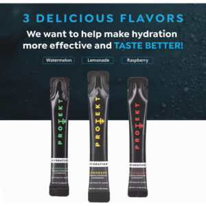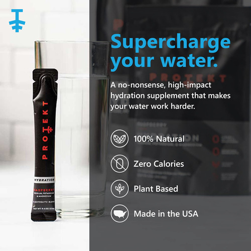 Aumente suas expectativas Como atletas e aventureiros, criamos a Protekt para suprir a necessidade de produtos que nos equipem para ultrapassar os limites da experiência humana. Para conseguir isso, qualidade e pureza são os requisitos mais fundamentais que devem ser atendidos. Todos os nossos suplementos e ingredientes foram escolhidos e fornecidos com a intenção de dar a você uma vantagem quando chegar a hora. Esses ingredientes e produtos são então testados minuciosamente para garantir que você obtenha exatamente o que espera. Pacote líquido de hidratação Nosso equilíbrio refinado de eletrólitos auxilia todos os processos do corpo desde o início. Apresentando uma fórmula exclusiva de 10:2:1 de eletrólitos de sódio, potássio e magnésio para ajudar seu corpo a se reidratar, se recuperar mais rápido e melhor e se sentir bem! Fazemos com que a água trabalhe mais para você, ajudando você a avançar, não impedindo você! Chegue ao topo do último arremesso, reduza segundos de um recorde pessoal ou fique no surf por mais tempo! 0 Mess Adicione 1 pacote de solução eletrolítica a 16 onças de água e beba. Nossa fórmula líquida se dispersa instantaneamente na água. Use de 1 a 2 pacotes diariamente ou conforme necessário. Não há necessidade de misturar ou agitar, então vá se hidratar a qualquer hora, em qualquer lugar! 2 sabores deliciosos Queremos ajudar a tornar a hidratação mais eficaz e ter um sabor melhor! Limonada de framboesa para