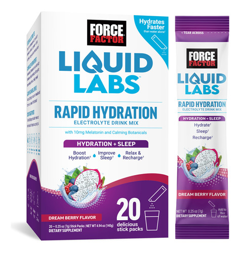 FORCE FACTOR Liquid Labs Sleep, eletrólitos em pó e sonífero com melatonina 10 mg, pacotes de hidratação para ajudar a dormir com vitaminas, minerais e antioxidantes, sabor Dream Berry, pacotes de 20 palitos — HIDRATE MAIS RÁPIDO E MELHOR: a matriz de otimização de hidratação exclusiva da Liquid Labs combina cinco eletrólitos essenciais, água de coco e complexo mineral marinho Aquamin com açúcar de cana natural para acelerar a absorção e hidratá-lo cada vez mais rápido do que apenas água. – ADORMEÇA MAIS RÁPIDO: Cada gole delicioso deste poderoso sonífero contém 10 mg de melatonina extra forte misturada com L-teanina e ervas calmantes ajudam você a adormecer mais rápido, permanecer dormindo por mais tempo e acordar se sentindo revigorado. – CONTÉM 10 VEZES MENOS AÇÚCAR: muitas bebidas esportivas e eletrólitos em pó estão sobrecarregados com açúcar. O Liquid Labs é um pó hidratante saboroso e melhor para você, feito com 10 vezes menos açúcar do que a principal bebida esportiva. – FEITO COM 3 VEZES MAIS ELETRÓLITOS: Não se deixe enganar por pacotes de hidratação que são principalmente açúcar e sal. Os pacotes de hidratação Liquid Labs contêm 3 vezes mais eletrólitos do que as principais bebidas esportivas, proporcionando hidratação rápida, refrescante e de alta qualidade. – REFRESCANTE E SABOROSA: A água é vital para uma boa saúde, mas pode ser um pouco entediante. A mistura de bebidas eletrolíticas da Liquid Labs está repleta de sabores refrescantes de frutas que você vai adorar e não contém adoçantes artificiais ou corantes artificiais.