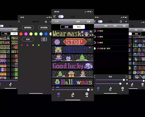 Suporta texto, imagem dinâmica, imagem estática, grafite, ajuste de brilho do ritmo musical, rolagem multidirecional, ajuste de velocidade, etc.