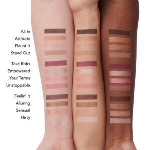 Uma paleta de sombras versátil e ideal com 12 tons de longa duração com infusão de primer em acabamentos foscos, acetinados e brilhantes para todos os tons de pele. Misture e combine para obter looks sensuais e ilimitados.