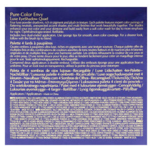 A melhor autoexpressão para olhos que revelam todas as emoções. Tons vibrantes. Multiacabamentos ricos. Combinações luxuosas que agradam a todos. Cada paleta apresenta quatro sombras em pó de luxo, ricas em pigmentos e com textura macia.